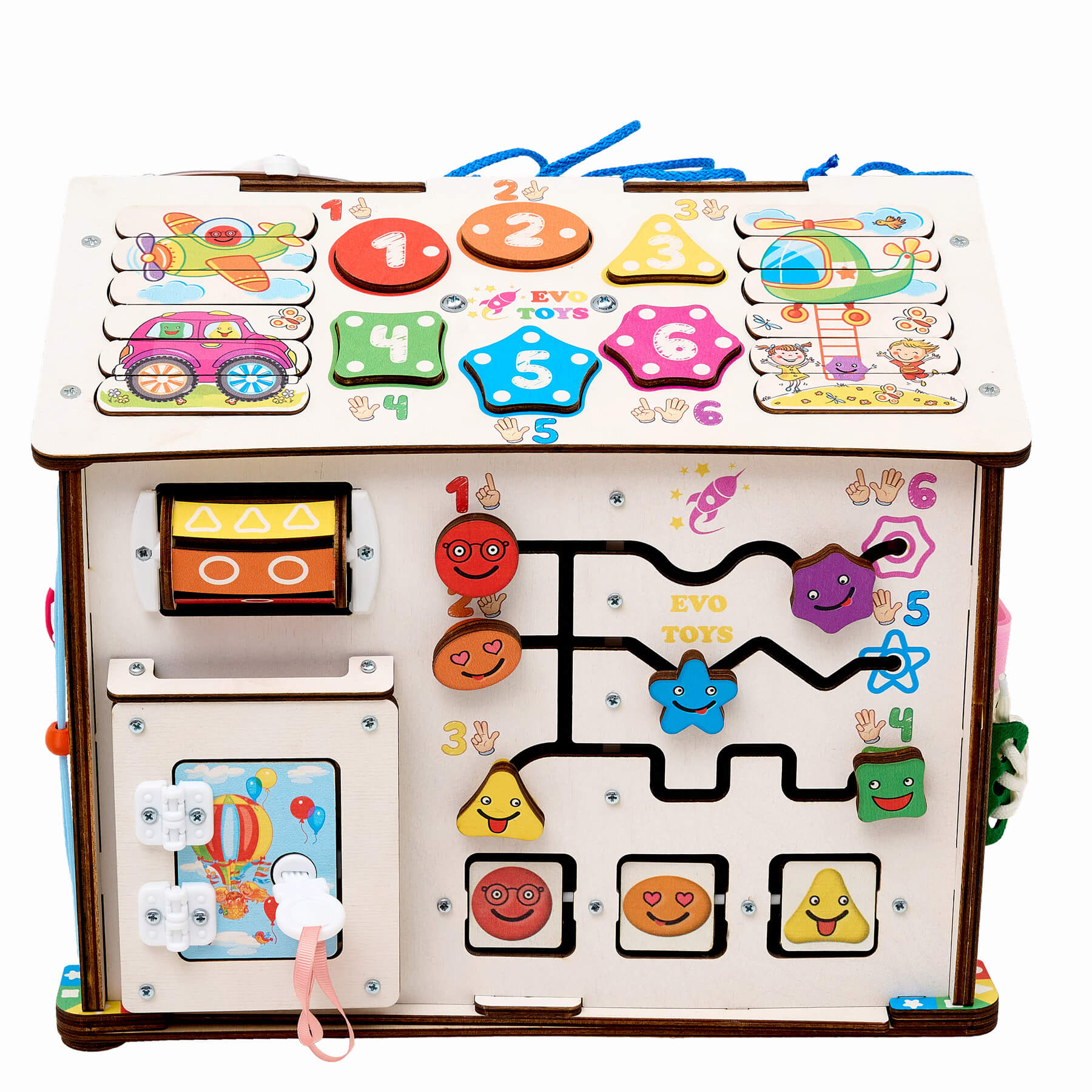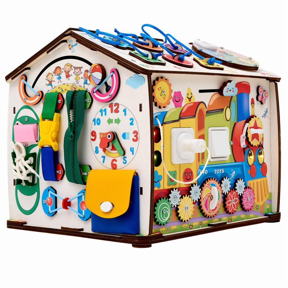Этот большой и яркий бизидом с веселыми смайлами не только обучает малыша полезному, но и каждый день дарит ему отличное настроение! А еще бизиборд универсальный: его можно смело дарить как годовалой крохе, так и ребенку 4-5 лет.